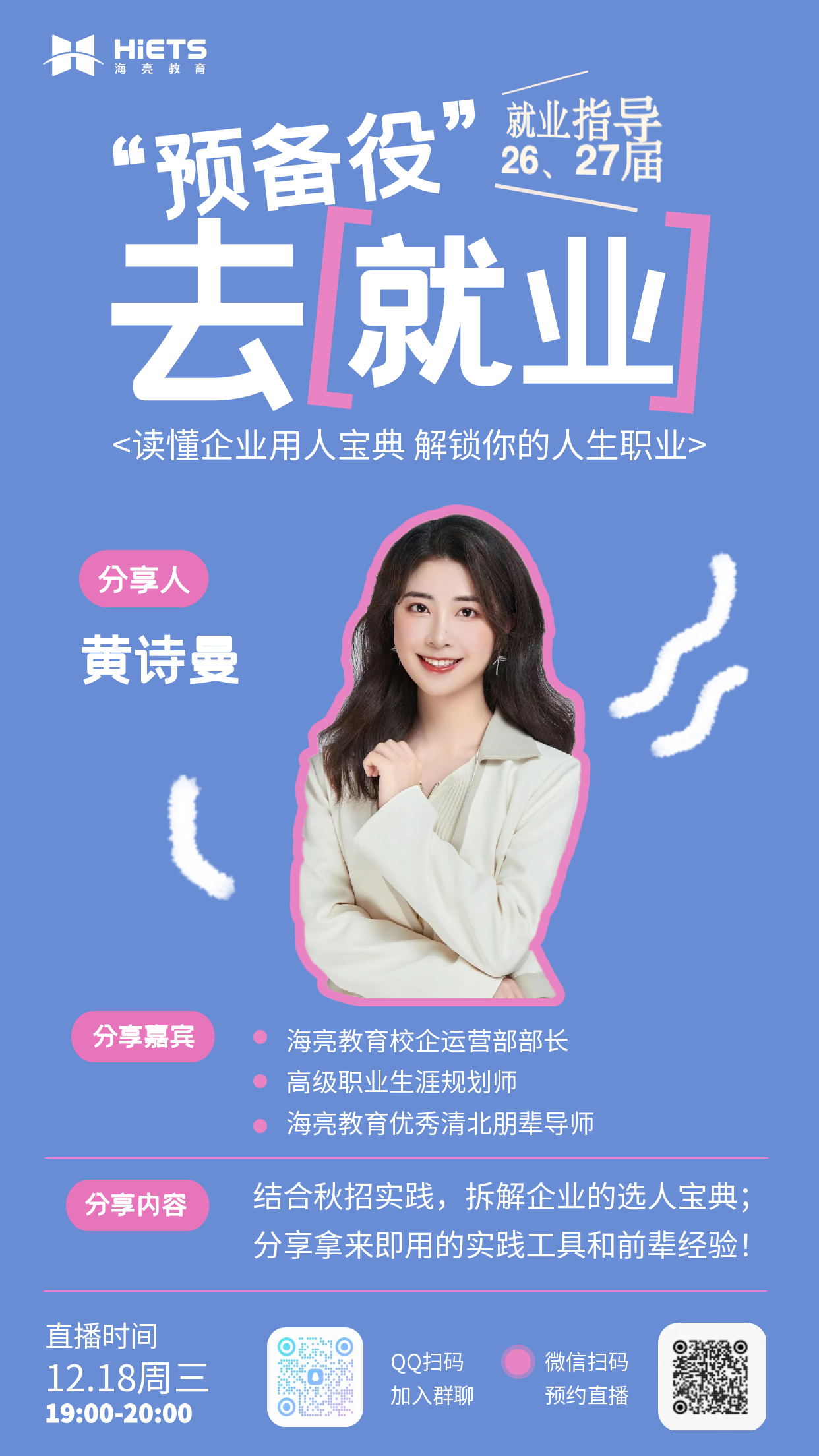 26、27届毕业生如何解锁自己的人生职业?——海亮教育大学生就业指导公益讲座暨海亮创新班招募直播时间:2024年12月18日(周三)19点直播链接:https:...